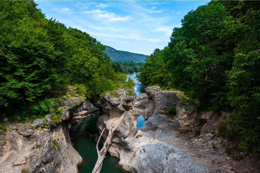 Хаджохская теснина: Узкий каньон с отвесными скалами, созданный рекой Белой. Прогулка по теснине – это возможность ощутить мощь природы и полюбоваться красотой скальных образований.